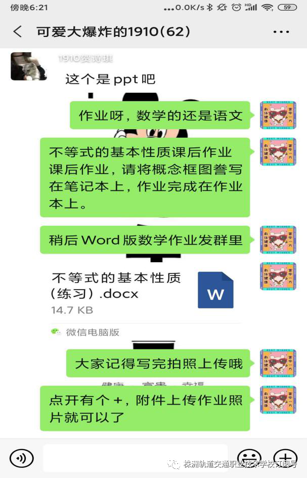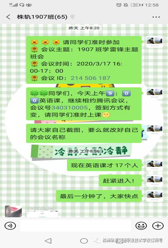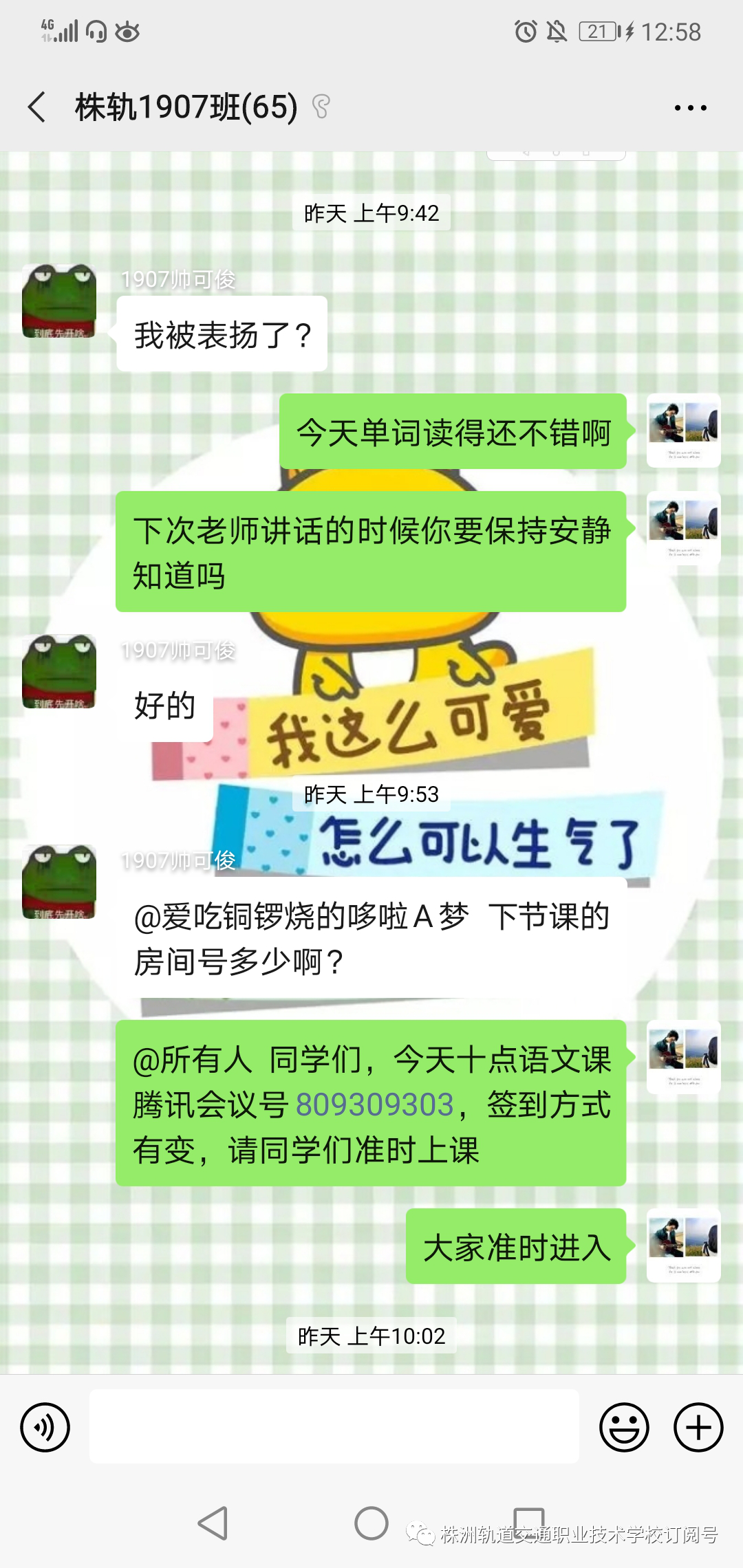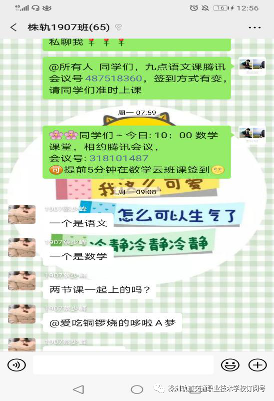 疫情期間,湖南中職株軌響應國家“停課不停學”,組織任課老師線上直播教學,為保障孩子們的學習效果,以及德智體全面發(fā)展,班主任與任課老師雙重配合,在這個過程中班主任充當著叫醒服務、提醒上課服務、催交作業(yè)服務、勞動課服務、攝影培訓服務等等~~~變無形為有形,電話、微信、QQ、騰訊會議等方式齊上陣。