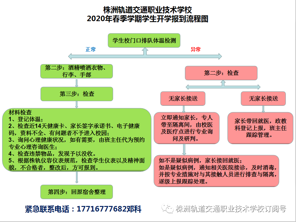 湖南中職株軌根據上級主管部門指導性建議,決定4月12日組織高三年級返校報到。4月14日-15日高二、高一學生錯峰返校報到。為保障師生生命安全,確保全體師生順利、平安返校,逐步恢復正常教學秩序,通知如下: