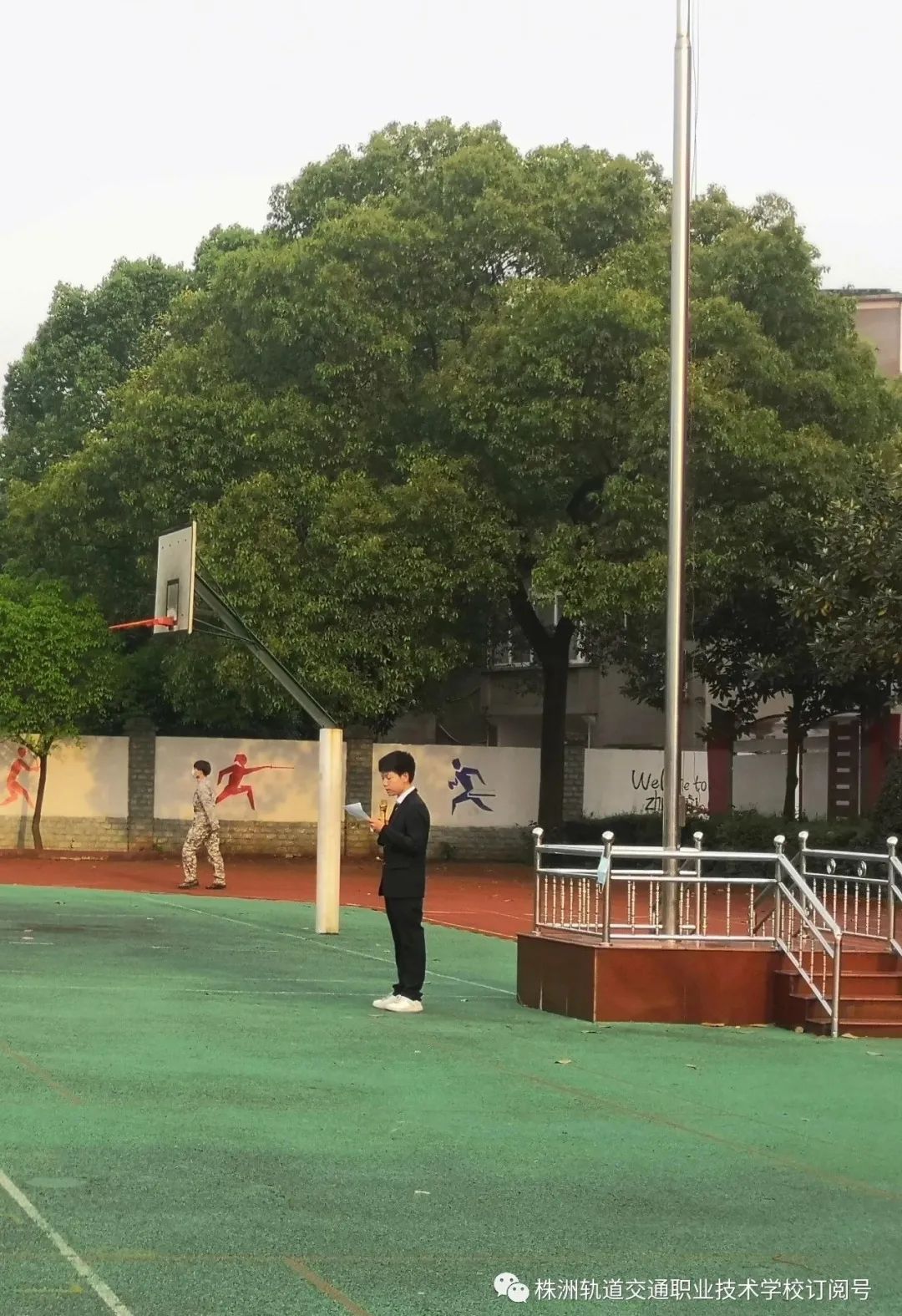 株洲職校學(xué)生代表文齊靖在國(guó)旗下講話,他說(shuō):“作為一名株軌學(xué)子,在這里不僅學(xué)知識(shí),更學(xué)會(huì)了如何為人處事,懂得感恩、變得有禮、勤勞,可以說(shuō)株軌給了我們每個(gè)學(xué)子滿滿當(dāng)當(dāng)?shù)恼芰浚o了我們陽(yáng)光自信的氣質(zhì),給了我們向上的動(dòng)力與激情, 而我們又將以什么奉獻(xiàn)給株軌呢?在這個(gè)青年人自己的節(jié)日里,當(dāng)我們靜靜思考這個(gè)問(wèn)題時(shí),會(huì)感到一份責(zé)任油然而生,我們要讓株軌的發(fā)展和未來(lái)有我們今天在這里的每一個(gè)人的付出和力量,我們更要讓自己不辜負(fù)這個(gè)時(shí)代賦予我們的使命。我相信我們完全可以做到,完全可以在株軌的光榮歷史上刻上我們的名字,讓這個(gè)時(shí)代記住我們。”