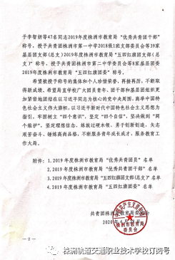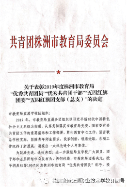2020年“五·四”青年節(jié)期間,株洲職校(m.hldgccrc.com)株軌學(xué)子榮獲共青團(tuán)株洲市教育局委員會(huì)五四表彰。