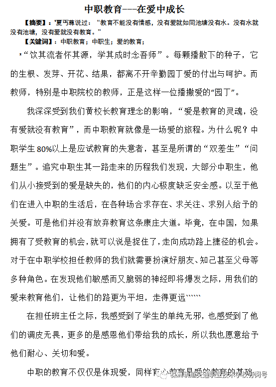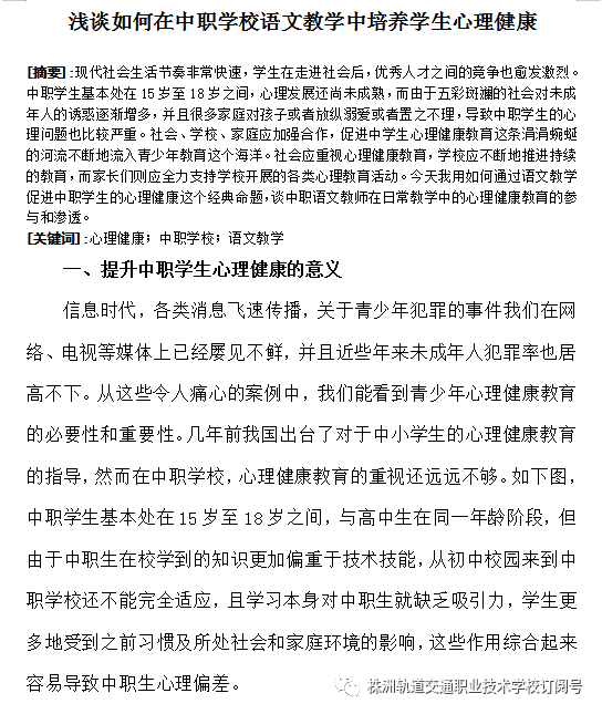 在2020年度株洲市職業(yè)教育優(yōu)秀論文評選活動中,我校五位老師提交了教育論文。教育論文的寫作是提升我校教師的專業(yè)水平,提高教學(xué)質(zhì)量和效益的有力推手,在推進學(xué)校內(nèi)涵發(fā)展上具有重大作用。